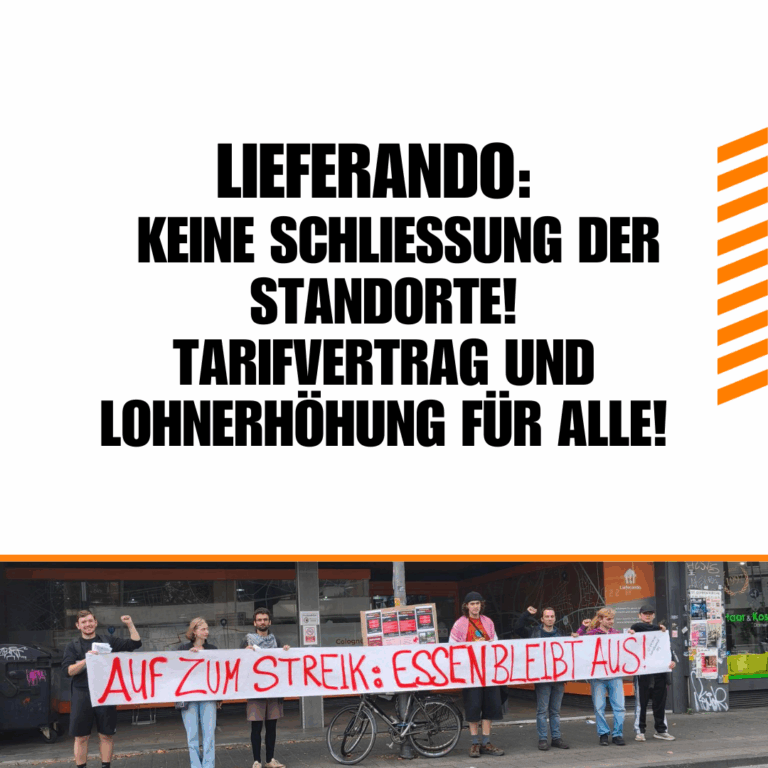 Lieferando: Keine Schließung der Standorte! Tarifvertrag und Lohnerhöhung für alle!